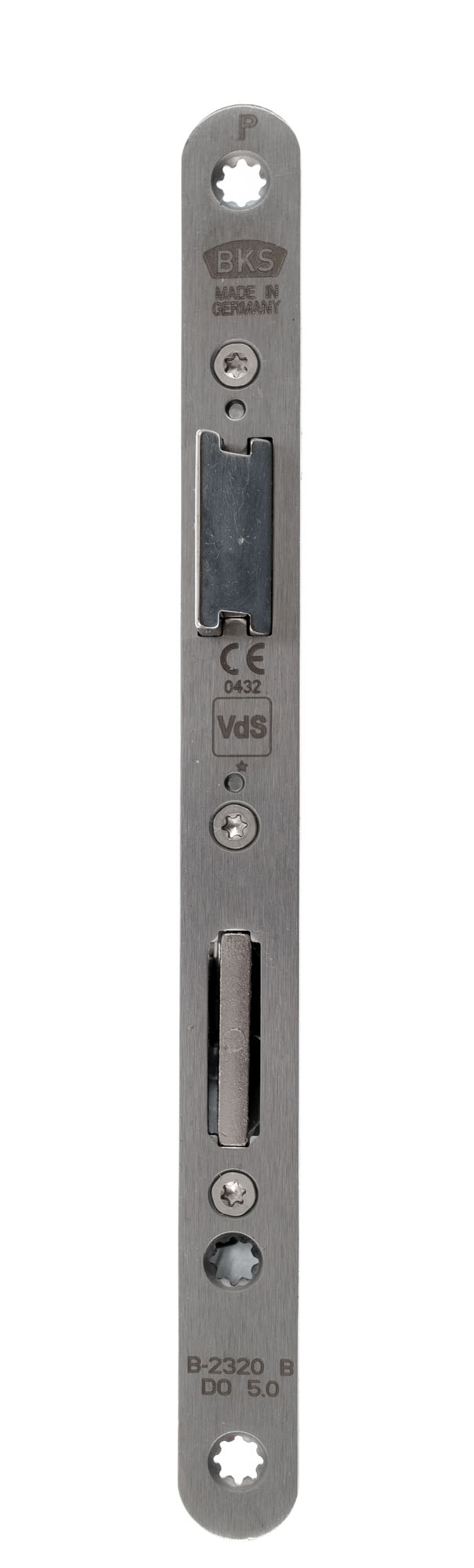 BKS Einsteckschloss B-23200-02-L-8 mit Panik Umschaltfunktion B, DIN links, 72 mm Entfernung, 60 mm Dorn, 9 mm geteilter Nuss, Stulp 20x235 mm abgerundet