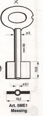 Artikel-Nr.: G5ME1Messing Doppelbartschlüssel für MELSMETALL Tresore