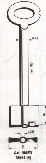 Artikel-Nr.: G5ME3Messing Doppelbartschlüssel für MELSMETALL Tresore